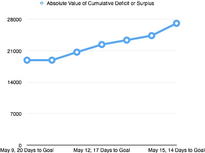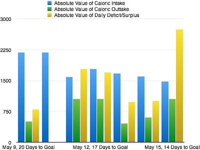 Two things stand out here. First, last Sunday there was no outtake and no deficit. It was Mothers Day. I did fairly well staying within my calorie limit for the day, and given this is a once in a while event I think that’s actually quite a win. I won’t have lost weight that day – but I did share a beautiful day with my children and husband and nudged just a little.